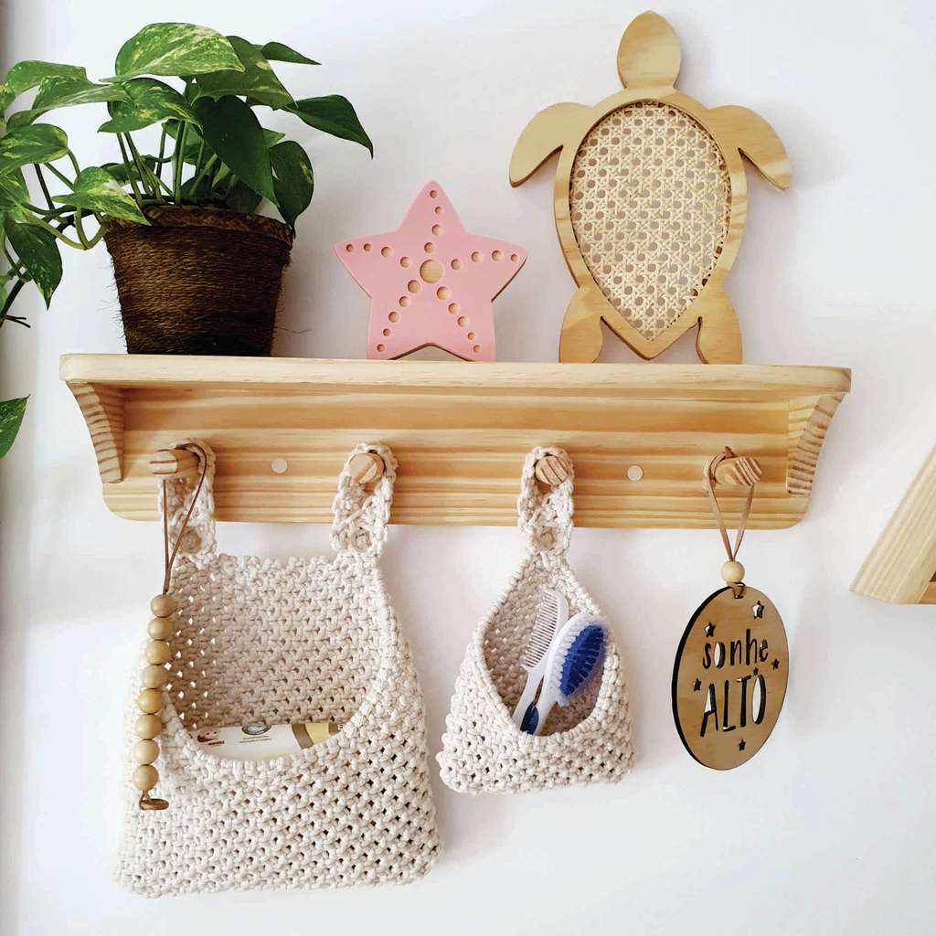 Podem ser colocados em prateleiras, ganchos ou até no berço!