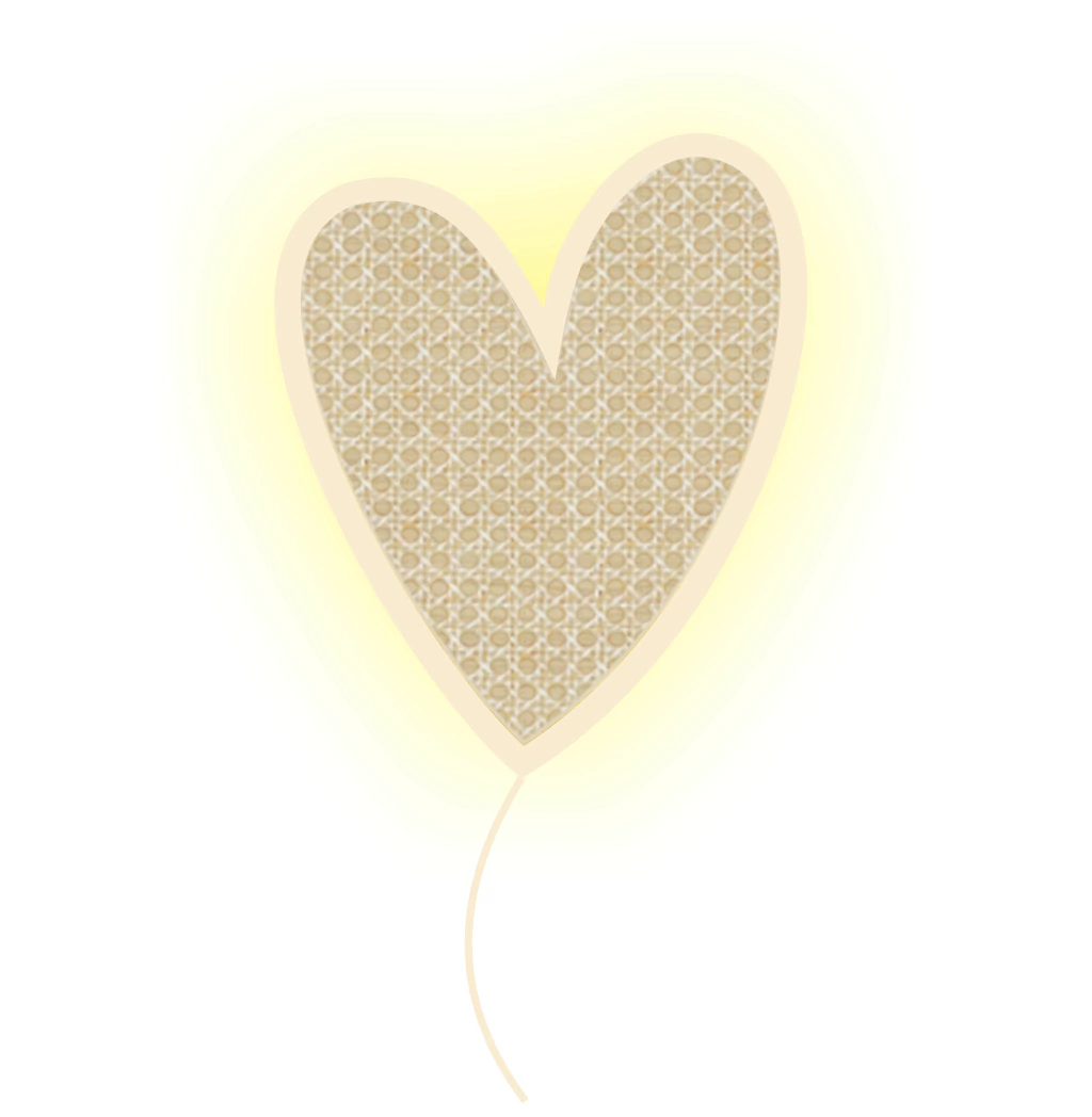 Luminária de Parede em formato de Coração com palha indiana e fundo madeira