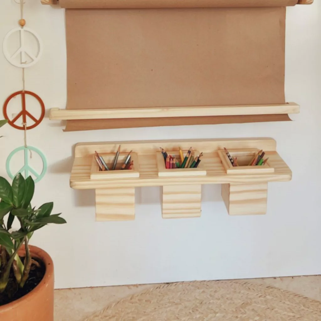 1 prateleira e 3 caixas para lápis