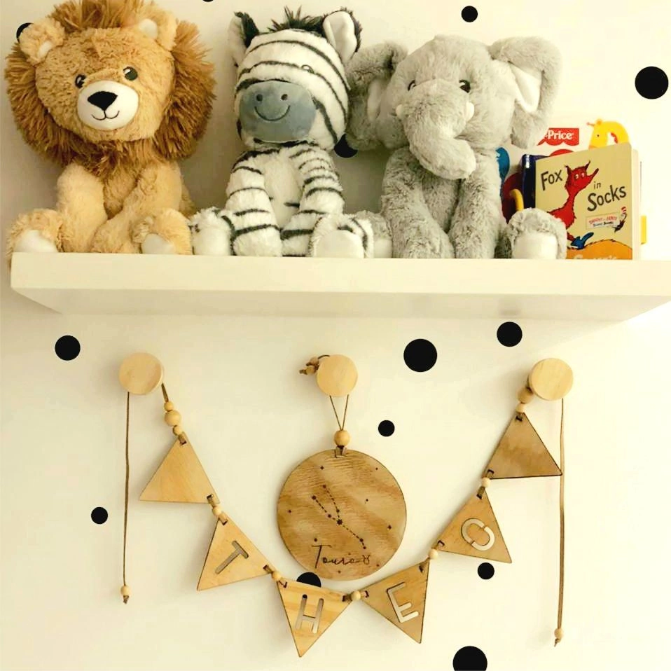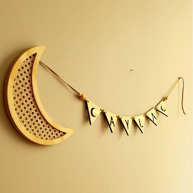 Varais com nomes de até 5 letras terão 2 triângulos extras sem letras nas pontas, varais com nomes de mais de 5 letras terão apenas os triângulos das letras